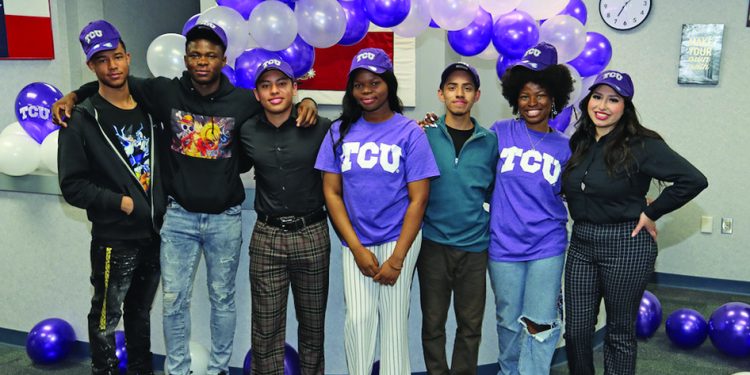Each year, TCU awards scholarships to students at Title 1 schools in the Dallas-Fort Worth Metroplex as part of the Community Scholars Program. With seven recipients, Sam Houston has the largest number of students receiving the award this year.