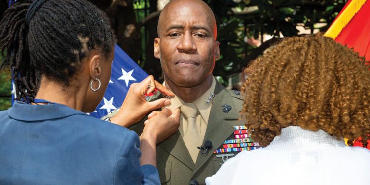 “The milestone and what it means to the Corps is quite essential,” he says. “Not because of the mark in history, but what it will affect going forward, especially for those younger across society that want to aspire and look at the Marine Corps as an opportunity.”