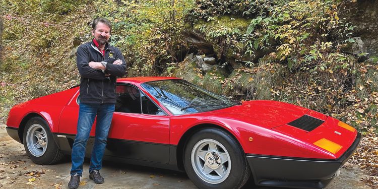 Steve Cantera stands with his one-of-a-kind 1981 Boxer Berlinetta Lemans Rated Christmas Red Ferrari.