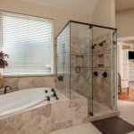 “We have updated all the bathrooms, the kitchen and we expanded the utility room, incorporating granite countertops, travertine backslashes, new sinks and faucets,” Thad says. “We’ve also repainted and added wood floors and stamped concrete. We updated the pool tile and refinished it with pebble tech.”